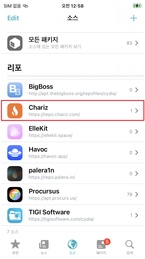 마지막으로 terminal app을 깔고 싶으면 sileo에 Chariz 소스를 설치해주자