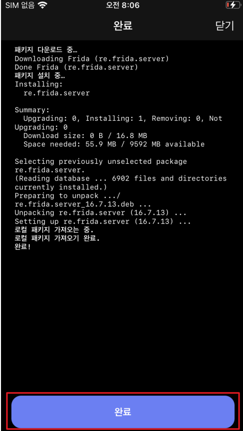 정상적으로 실행된다면 iOS 앱진단에 필요한 Jailbreak 환경은 모두 구축됐어!