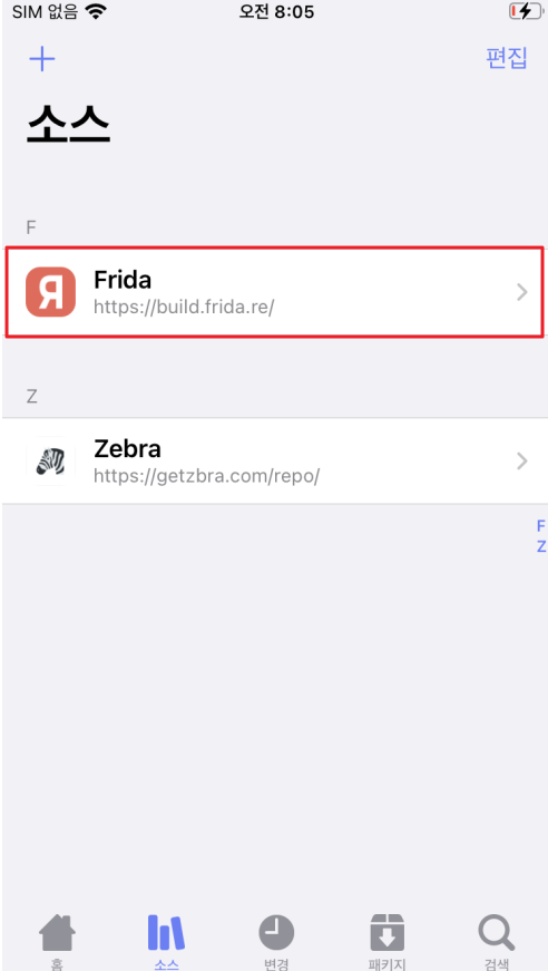 Frida 설치는 Zebra 앱에 소스추가를 진행해주면 된다.