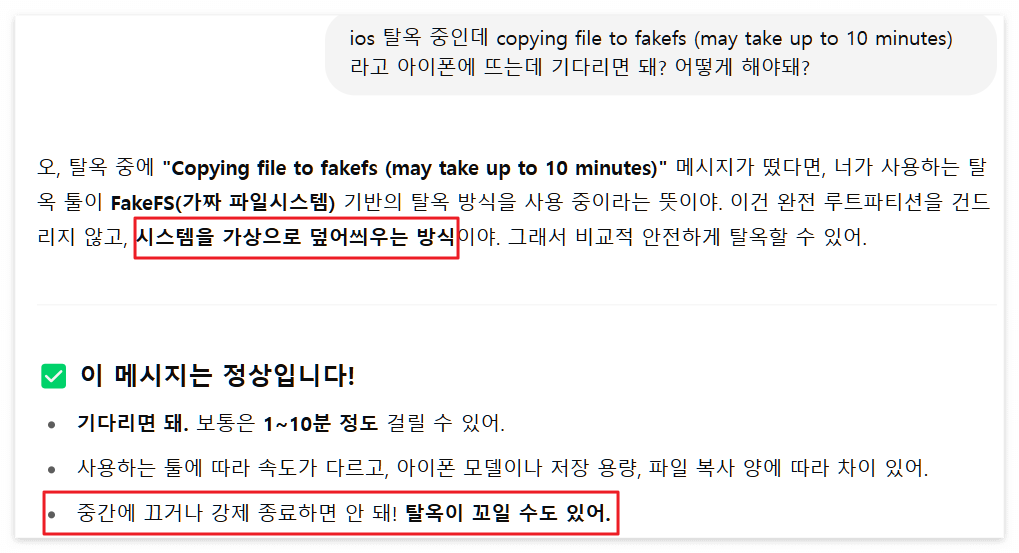 iOS 탈옥이 풀려서 재탈옥 하다가 꼬인 상황이다...DFU 모드로 진입해서 펌웨어를 새로 밀어넣고 다시 탈옥을 시도해보려 한다.모르는 부분에 대해 하나씩 물어보는건 GPT에게 물어보는게 좋은 것