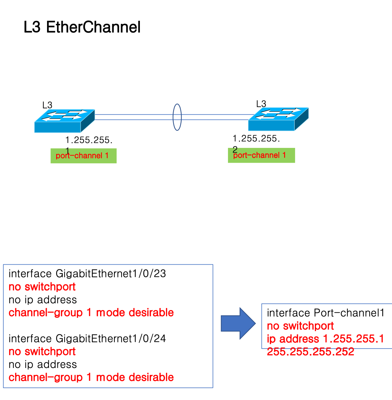 L3 etherchannel의 경우 routing 기능까지도 적용할 수 있게 돼