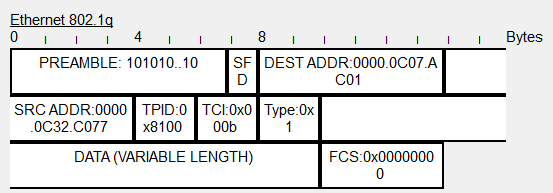 TCI에서 0x00b는 VLAN number로 vlan 12번이 지금 encapsulation 됐음을 볼 수 있어