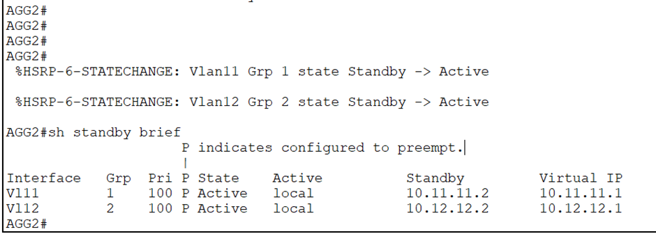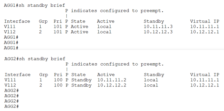 이렇게 설정하고 show standby brief 명령으로 설정을 확인해보자