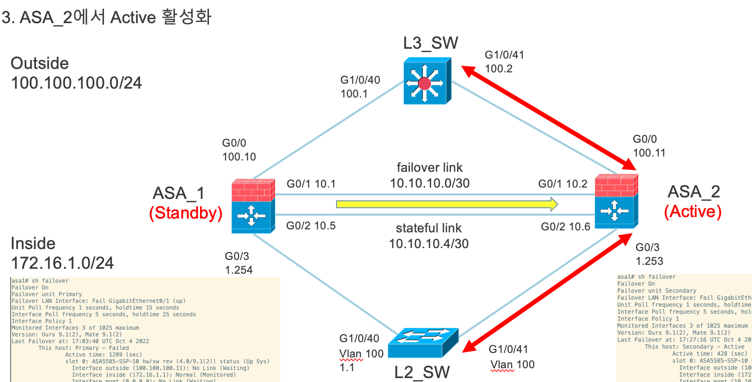 이 경우 failover active 명령어로 active와 standby를 바꿔줄 수 있어