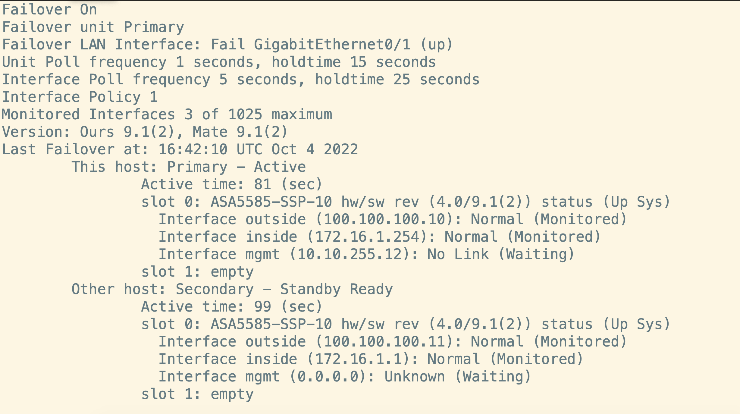 (Failover int ip STATE 192.168.100.5 255.255.255.252 standby 192.168.100.6)