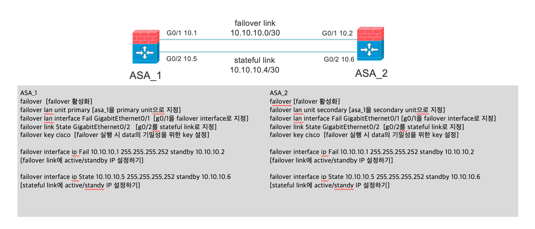 우리가 다뤄볼 firewall인 ASA는 다음과 같이 4가지 구성요소가 같아야 failover가 가능해!