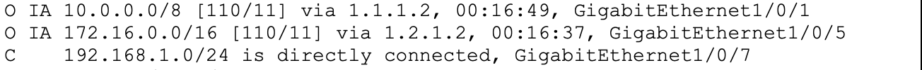 OSPF intra-area에서 온 data로 10.0.0.0/8에 대한 network 대역만 지금 보여지고 있어