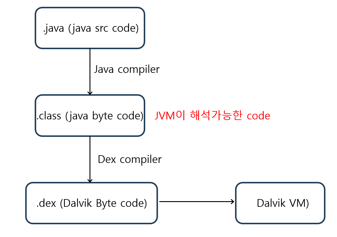 초기 안드로이드는 DVM complie 방식을 채택했지만, 현재는 ART 방식으로 변환된 상태다.