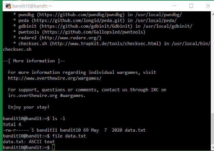 Bandit Level 10 → Level 11