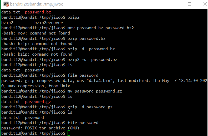 file 명령으로 password 파일 type을 확인했다. 이번엔 gzip으로 압축되어있다고 한다. 또 풀어주자